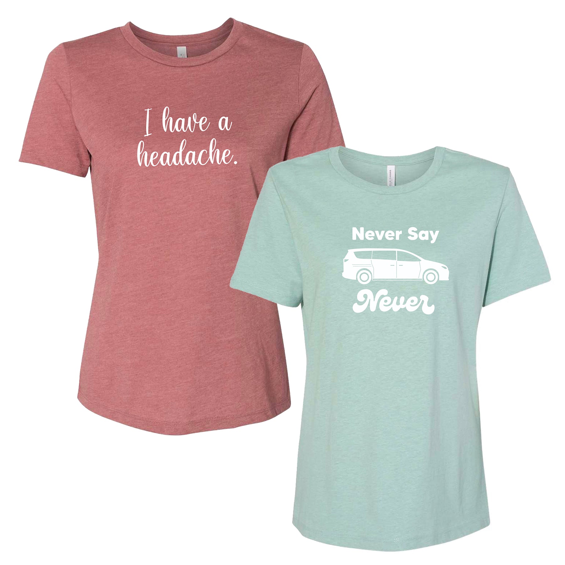 Basic Mom Bundle: I Have a Headache Tee + Never Say Never Minivan Tee