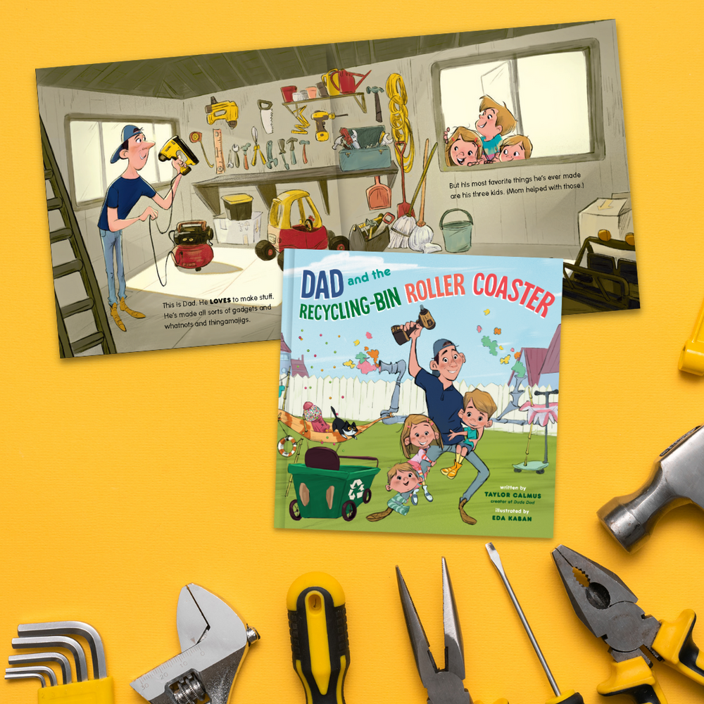 Dude Dad and Disney artist Eda Kaban have built a funny and tender tale of a DIY dad’s over-the-top attempts to connect with his kids through wacky inventions. Eager for his three kids to have the best day ever, Dad throws himself into build after build—from a leaf-blower-powered rocket ship to an ice cream truck with sherbet shooters—each more elaborate than the last. But one after another, the kids (including the unusually well-spoken baby) decline to play with Dad’s creations. Feeling dejected, Dad starts to put away his tools, but then his kids are finally able to tell him what they really want . . . to play with him! Kids and parents will love this fun tale about how building memories is the best invention of all!