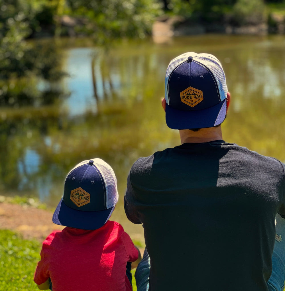 Curved bill mesh snapback hat with engraved vegan tan leather patch. Adjustable snapback for all sizes.